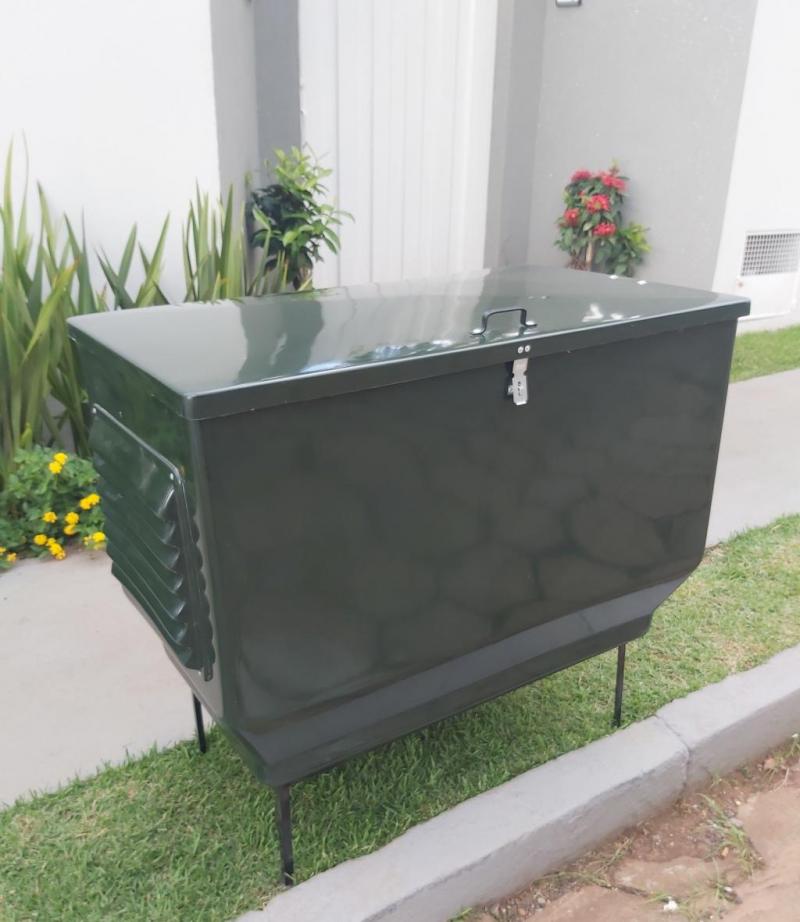Lixeira de madeira externa